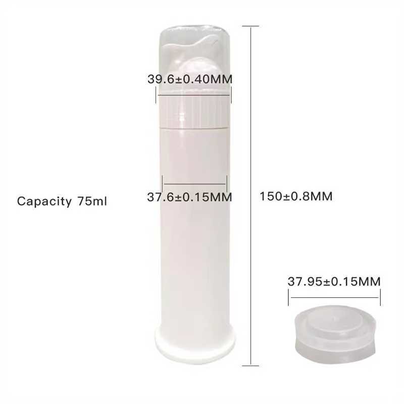 Nossos frascos de bomba de pasta de dente sem ar à prova de vazamento são feitos de material PP de alta qualidade e para alimentos, garantindo segurança, durabilidade e confiabilidade. Projetados com um sistema de bomba sem ar, esses frascos fornecem uma dispensação precisa, evitando contaminação e desperdício de produto. A capacidade de 75ml é ideal para pasta de dente, produtos para higiene bucal e outras formulações viscosas. Apresentando excelente desempenho de vedação, eles são ideais para viagens e sem bagunça. Opções de rotulagem personalizadas estão disponíveis, tornando-os perfeitos para marcas de rótulo privado, uso promocional e embalagens de varejo.